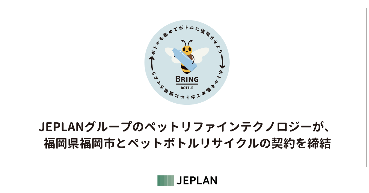 株式会社JEPLANのグループ会社であるペットリファインテクノロジー株式会社(代表取締役社長:伊賀 大悟、以下「ペットリファインテクノロジー」)は福岡県福岡市(市長:髙島 宗一郎)と、ボトルtoボトルに向けたペットボトルリサイクルの契約を締結しましたので、お知らせいたします。