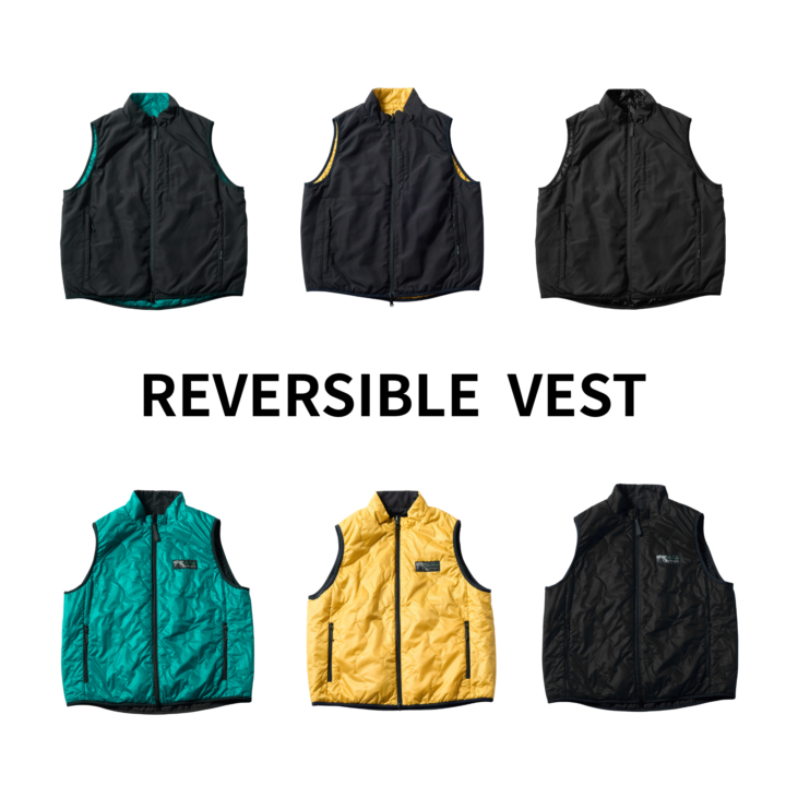今回のコラボレーションアイテムは、「再生ポリエステルについてより多くの方に知ってほしい」という思いから誕生しました。WILD THINGSの人気モデル「REVERSIBLE BELAY VEST」をベースに、表面と中綿に繊維由来100%の再生ポリエステル「BRING Material ™」を採用し、裏面にはPETボトル由来の再生ポリエステル生地が採用されています。